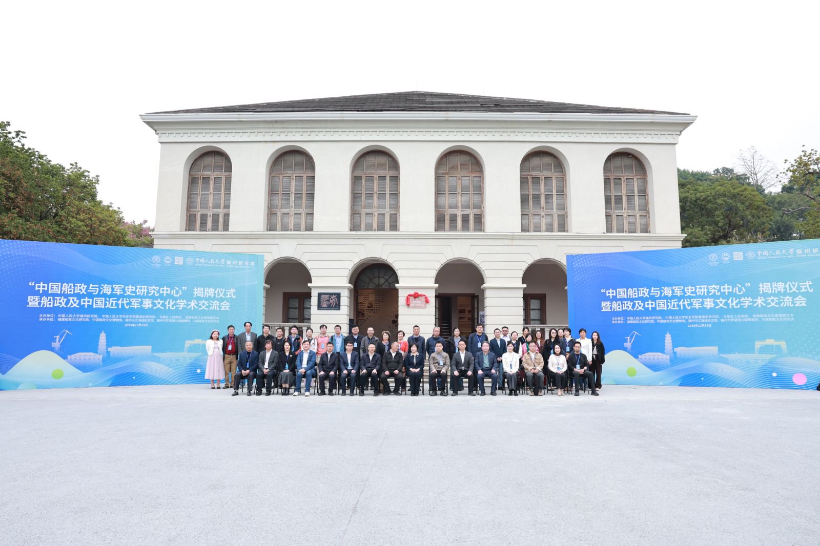 2025年12月19日,由中国人民大学福州研究院、中国人民大学历史学院暨清史研究所、马尾区人民政府、福建船政文化管理委员会主办的“中国船政与海军史研究中心揭牌仪式暨船政及中国近代军事文化学术交流会”在中国船政文化园内举行。来自军事科学院、中国社会科学院、中国人民大学、北京大学、厦门大学、福建师范大学、杭州师范大学、闽江学院等科研院校的专家学者及船政文化管委会、船政后裔等共七十余人与会。