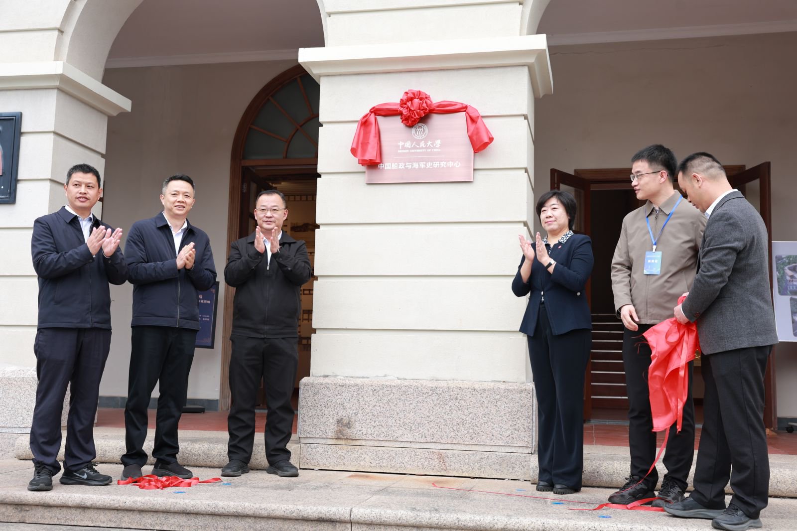 王易,福建省福州市人民政府党组成员,中国(福建)自由贸易试验区福州片区管理委员会(福州保税港区管理委员会)党组书记、主任张新怿,中国人民大学历史学院院长、清史研究所所长胡恒,福建省福州市委教育工委书记,市教育局党组书记、局长游昕,马尾区人民政府副区长、罗星街道党工委书记姚兴利,福建船政文化管理委员会副主任黄尚斌共同为研究中心揭牌。揭牌仪式由福建船政文化管理委员会副主任杨明新主持。