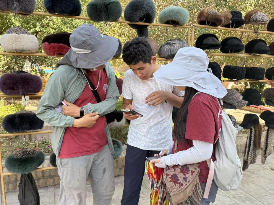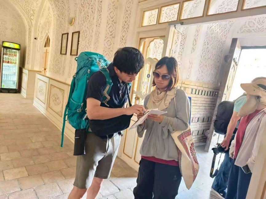 研学团成员在希瓦古城内发放问卷调查,对来自亚洲、欧洲等地的游客和希瓦古城本地居民及文旅从业者发放问卷进行了调研。