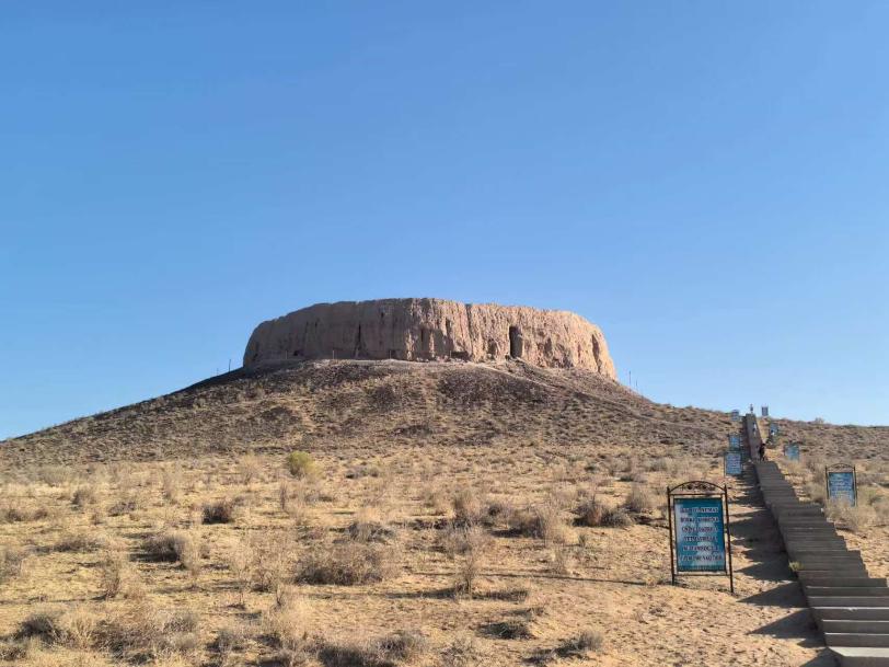 结束博物馆参观后,研学团在卡拉卡尔帕克斯坦人文研究所研究员Abutalib Bekbauliyev的陪同下,来到Chilpik Kala遗址调研。