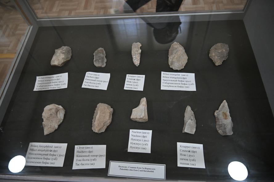 卡拉卡尔帕克斯坦人文研究所文物库房部分馆藏石器展示