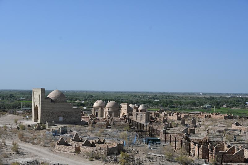 11日下午,研学团参观了努库斯郊外的Mizdakhan墓地,这是一处墓葬建筑群,占地约200公顷,延续使用的时间非常长,最早的墓葬建于公元前4世纪,直到今天仍在使用。