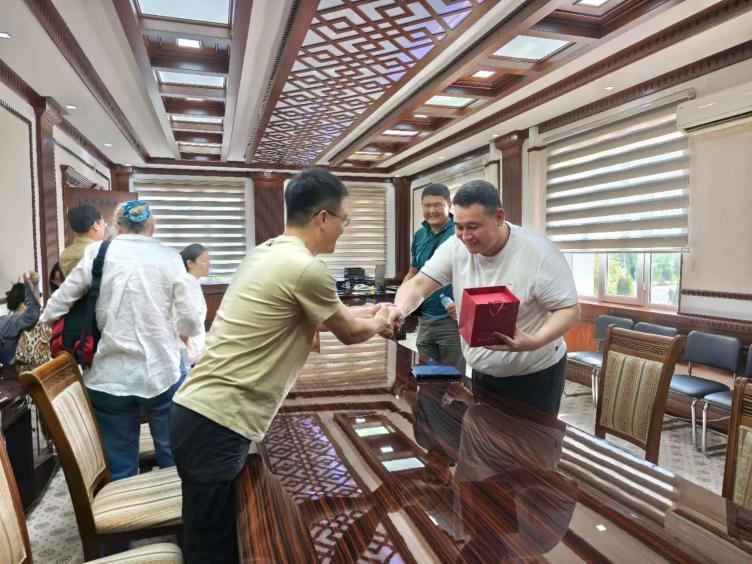 Xidirov市长对研学团师生的到来表示热烈欢迎,表示地方政府愿尽最大努力支持中乌考古发掘的进行,认为这是中乌两国文化交流和友谊的见证。双方互赠礼物,并合影留念。
