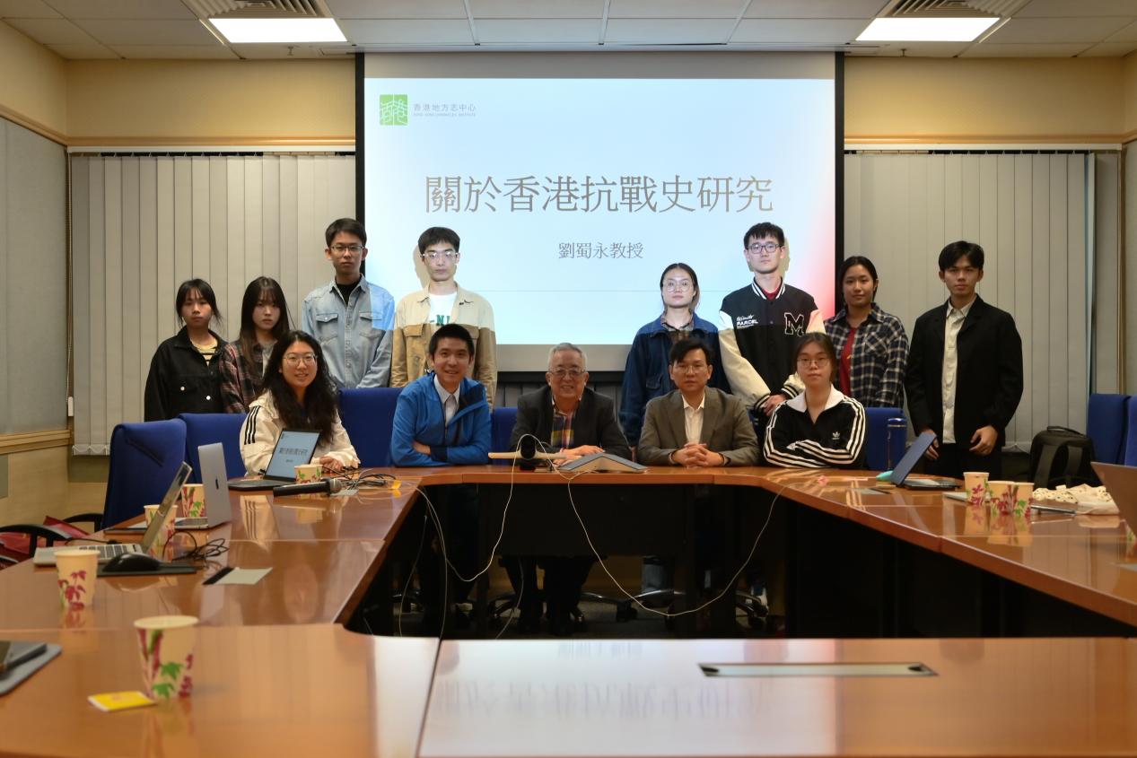 刘蜀永教授向调研团讲述了岭南大学校史以及自身的学术生涯,将香港抗战史研究及编纂香港地方志的历史过程徐徐铺陈。香港沦陷的三年零八个月期间,港九大队是香港唯一一支成建制、自始至终坚持抵抗的抗日武装力量。自1980年代起,大批老战士的口述史史料得以汇编留存,形成了一批重要参考史料。2017年,《港九大队志》编纂工作启动,经过深入的档案挖掘和田野调查,展现了中国共产党在国家存亡紧要关头的历史担当和港人的爱国传统。